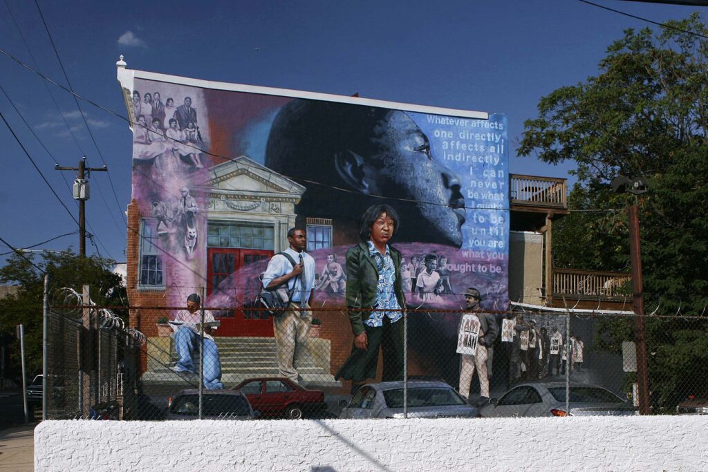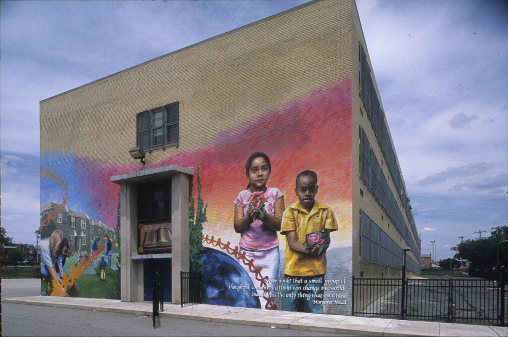 Eric Okdeh is a Philadelphia based muralist who has been creating public art since 1998. After receiving his BFA in painting from Tyler School of Art, Eric chose to focus on public art exclusively. Since 2002, in addition to his commissioned work, Eric has taught mural making classes to children and teens throughout the city as well as inmates at SCI Graterford Prison. Eric finds that the most successful murals provide a sense of inclusion and accomplishment among its participants, empowering them to take ownership in the work. Eric has over 80 public art commissions throughout Philadelphia, as well as murals in Wailuku, Hawaii, Seville, Spain, and Amman, Jordan. His work is featured in seven books about public and mural art.