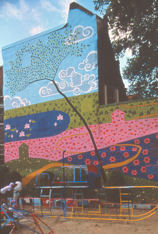 Eurhi Jones has been painting murals in the Philadelphia region since 1999. In addition to her independent work, she’s worked with the Philadelphia Mural Arts Philadelphia designing artwork for schools, garden spaces, recreation centers, playgrounds, and libraries. Major commissions have been at the Please Touch Museum, Bodine High School, and the Philadelphia Zoo. In addition to painting, she works with textiles, embroidery, and sculpture. Originally from Swarthmore, Pennsylvania, she is a graduate of Wesleyan University and the Pennsylvania Academy of the Fine Arts.
