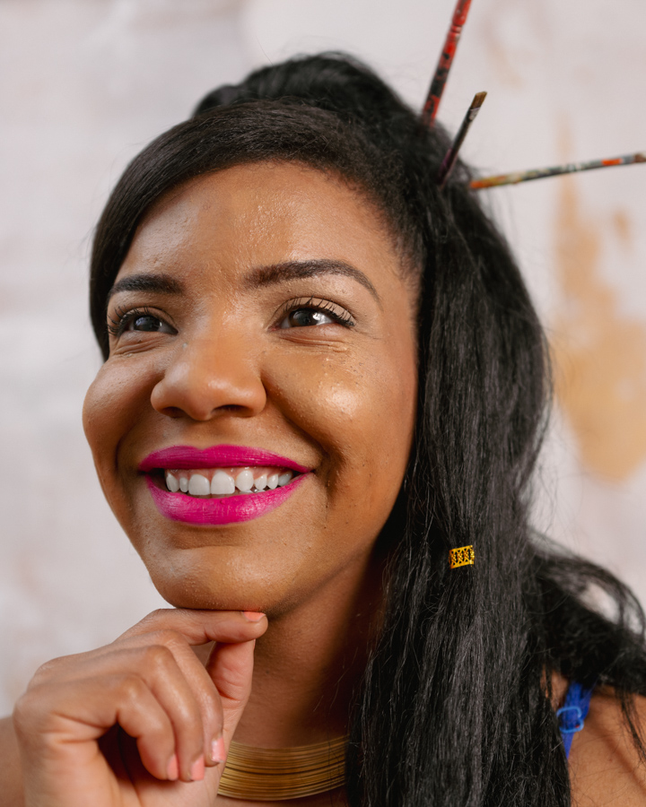 Originally from the Dominican Republic, LUSMERLIN is a multidisciplinary artist and chemical engineer with a background in textile and cement manufacturing. She currently splits her time between Philadelphia, PA and Columbia, MD and exhibits her work nationally. LUSMERLIN’s works across media share a thematic interest: womanhood, dance, the transformation of immigration, and the scenes of daily life that accompany her journey of re-discovery. LUSMERLIN’s approach to work borrows from Caribbean values, where it’s more important that a person “pops” in a room, rather than blend in.
