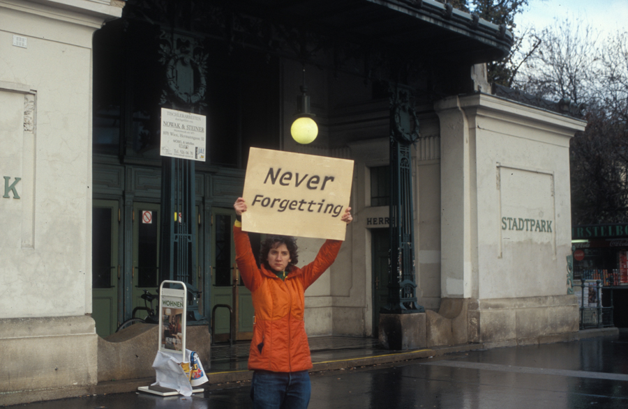 Sharon Hayes is an artist who engages multiple mediums–video, performance, and installation–in ongoing investigation into specific intersections between history, politics and speech. Hayes’ work is concerned with developing new representational strategies that examine and interrogate the present political moment as a moment that reaches simultaneously backward and forward; a present moment that is never wholly its own but rather one that is full of multiple past moments and the speculations of multiple futures. From this ground, Hayes often addresses political events or movements from the 1960s through the 1990s. Her focus on the particular sphere of the near-past is influenced by the potent imbrication of private and public urgencies that she experienced in her own foundational encounters with feminism and AIDS activism. Hayes’ work has been staged on the street, in museums, galleries and exhibition spaces, in theater and dance venues as well as in 45 lesbian living rooms across the U.S.