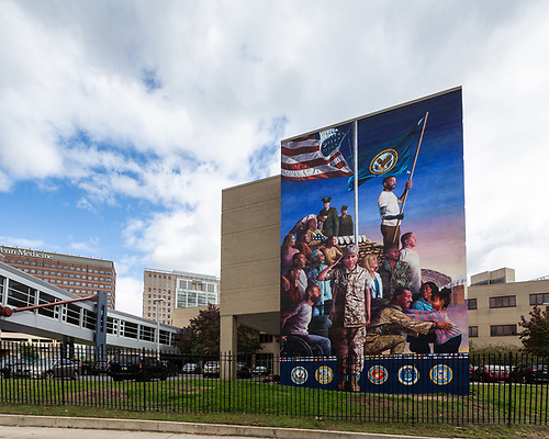 How can we help veterans feel seen, heard, and supported in their communities? This new mural from James Burns offers ideas, opening up conversations about veterans’ experiences, expressing their pride in service, and honoring their incredible resilience. Through workshops, resource fairs, and paint days, this ongoing project helps veterans develop their self-expression and artistic talents—telling their own stories of struggle and strength, and coming together in the journey toward wellness. Facing the bustling corridor of University Avenue, a wall on the Corporal Michael J. Crescenz VA Medical Center will feature images of the building’s namesake, project participants, and the artist’s own father, who was a Vietnam War veteran.