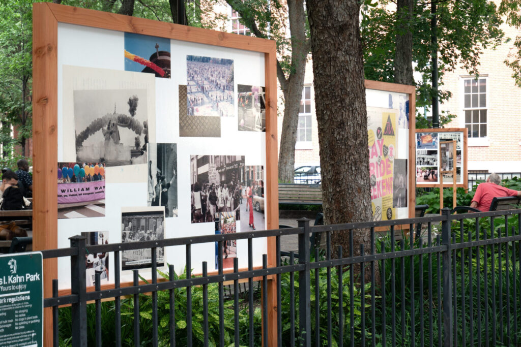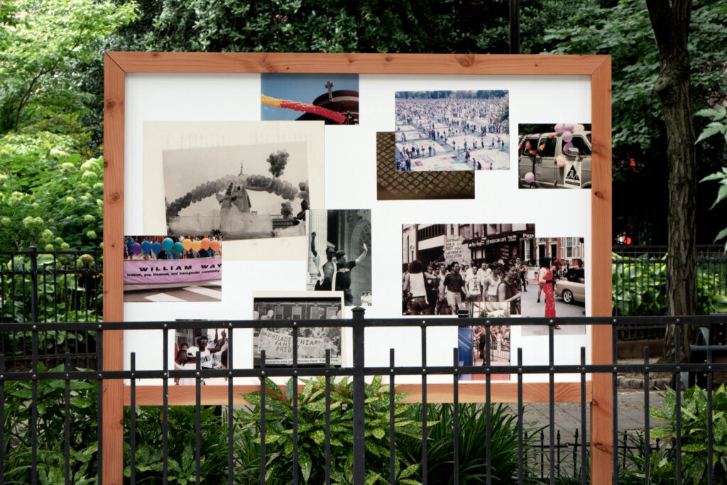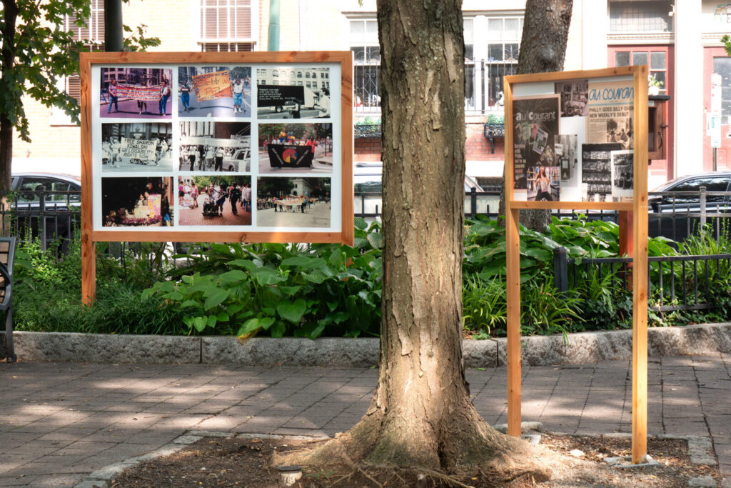 The project builds upon significant time George has spent in the John J. Wilcox, Jr. Archives at the William Way LGBT Community Center, Philadelphia’s most extensive collection of historical LGBTQ materials and ephemera. It is also sited in Louis Kahn Park, the only public space in Philadelphia’s Gayborhood that has historically been a gathering place for the community. AND INTO THE STREETS opened during Pride month as a call to foreground politics in the year’s celebrations. Many of the political issues that emerged in the installation remain hurdles, such as affordable housing, disability rights, and the health and well-being of trans and gender nonconforming people. Recurring individuals make appearances in the featured images as well, some of whom have passed and others who remain stalwart activists and anchors in this community. There is a will for the images to speak on how the past is always with us, either in memory or in place, and how the livelihood of LGBTQ communities in particular rely on strong bonds forged across lines of difference and across time. Grounded in time yet still able to speak, the lingering traces in these images breathe new life into the present, coalescing a joy and politics that calls us into the streets and into a world we are still becoming.