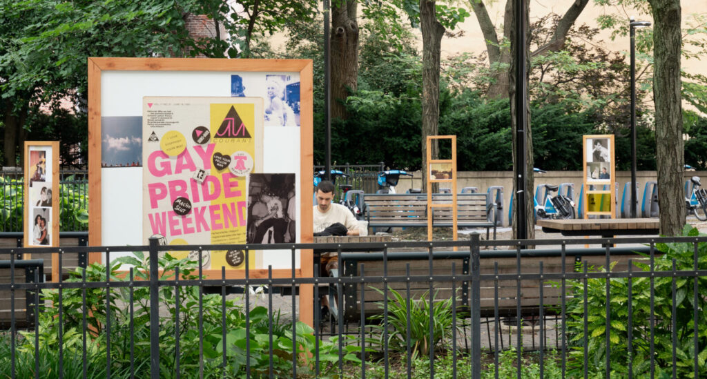 The project represents archival images and materials from the now defunct LGBTQ news publication, Au Courant (1982–2000). George threads together photographs of underrepresented histories and voices that depict a queer cultural memory of Philadelphia life, many of which were never published. Displays of public and private intimacies, political protests, and joyful celebrations were arranged nonlinearly, opening potential for new resonances to emerge as the images leave the solitude of the archives and gain new life in the streets. The result is a complex portrait that foregrounds not just LGBTQ life, but more importantly its intersections with many other hopes and struggles for a world built on care and solidarity.