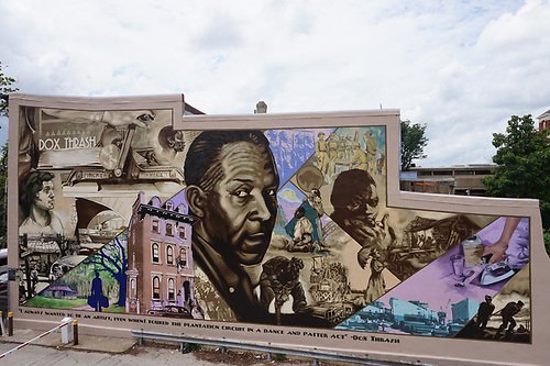 Bioluminescence by artist Sara Steele is located in the West Mount Airy neighborhood of Philadelphia, Pennsylvania. Steele described the mural in an artist statement: “The original ‘Bioluminescence’ painting was done after my first time snorkeling in the clear turquoise waters of the Caribbean. Sunlight streaking through water magnified the elegant forms of coral, shells, and sea creatures and illuminated a rainbow of color in the undersea world. Although Mt. Airy is far from those tropical waters, it is an equally colorful community in which I’ve been privileged to spend much of my life. I enjoyed adapting the painting for use on a large scale, and am delighted to have created a mural in the community I’ve known and loved for so long.