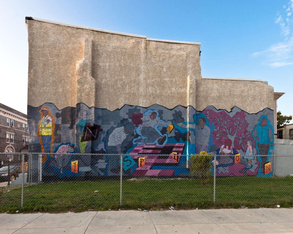 The Building Inspiration mural was created by the students of the E3 program located at the OIC building on North Broad Street though the Mural Corps program. The students were led by poet William Wright El to create poems, prose, and free-form writing projects that connected personal messages of inspiration. As lead muralist, artist Brad Carney took aspects of their poetry and conversations in class to create the overall design and concept of the mural. The students posed for pictures that represented emotional states such as