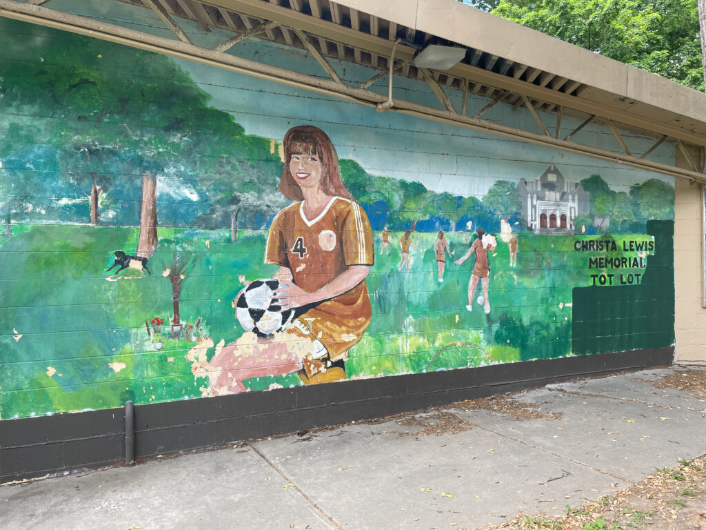 Christa Lewis Memorial (Russo Park), created by the Philadelphia Anti-Graffiti Network, was located in the Tacony neighborhood of Philadelphia, Pennsylvania. The mural was created in memory of Christa Lewis, a St. Hubert’s student athlete whose life was tragically cut short. The image featured here was taken in 2024, before the mural was reenvisioned and restored at the same site.