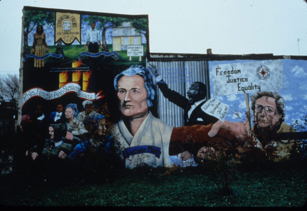 Civil Rights Mural by artist Cavin Jones is located in the Fairhill neighborhood of Philadelphia, Pennsylvania. The mural was commissioned by the Friends Society of Philadelphia, in honor of Lucretia Mott. Mott was an an early feminist activist and strong proponent of ending slavery. A strong orator she spoke at numerous events about the perils of racial and gender prejudice.