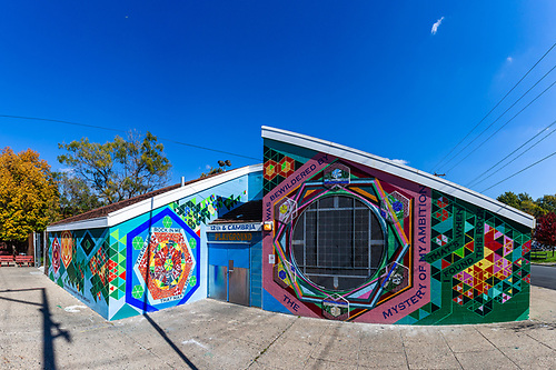 Location Note: Murals are located at the rear of 2042 Arch Street, visible from between 20th and 21st Streets at Cuthbert Street.
