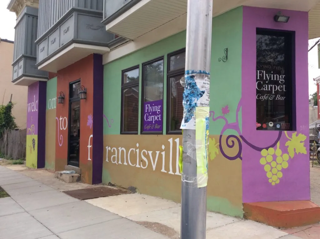 Location Note: Mural no longer on view at this location (painted out in 2010 wall now occupied by The People’s Harvest).