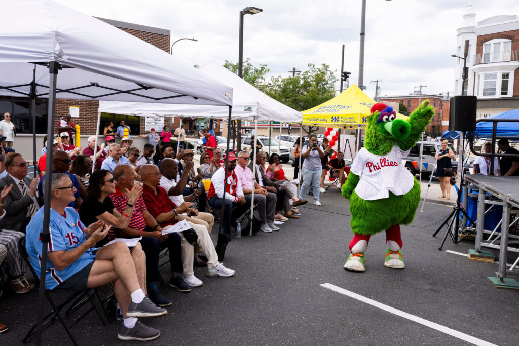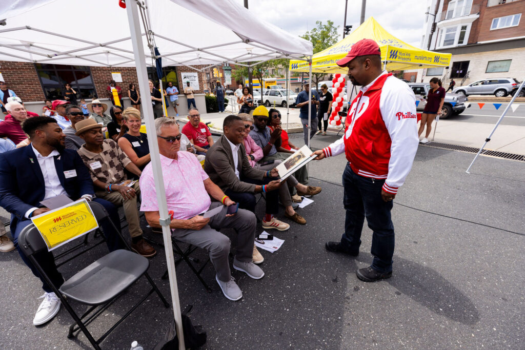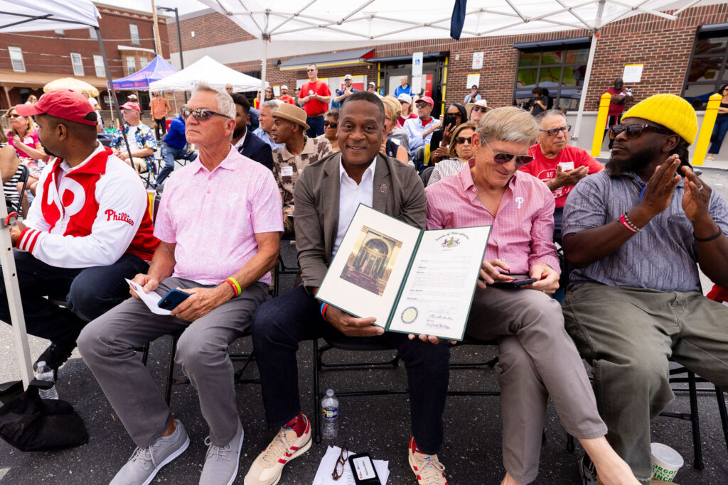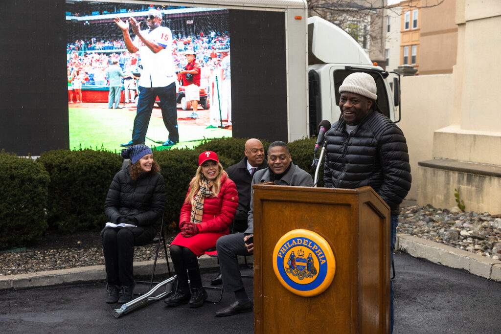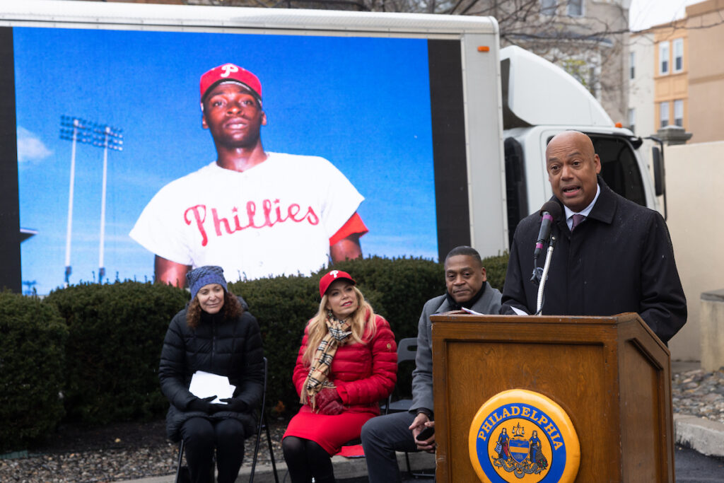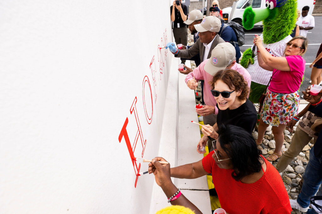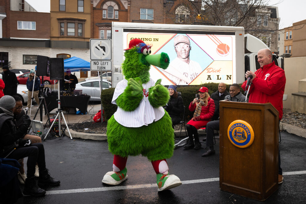 Mural Arts, in partnership with the City of Philadelphia and the Philadelphia Phillies, officially dedicated the mural Dick Allen, by Ernel Martinez. The mural celebrates Phillies legend Dick Allen, one of the top sluggers of his generation and the club’s first Black superstar. Photo by Gustavo Garcia, Colibrí Workshop.