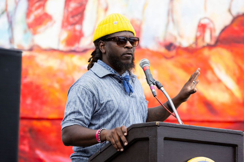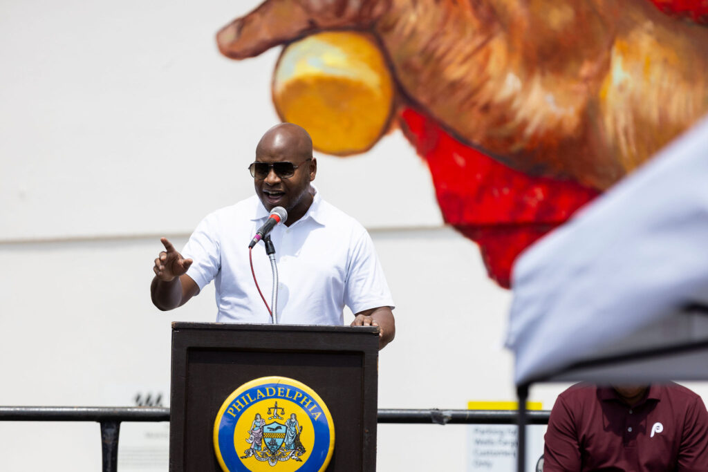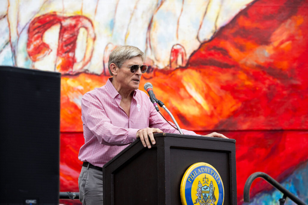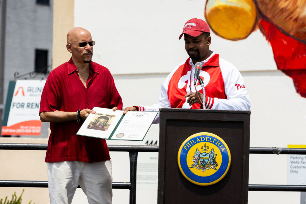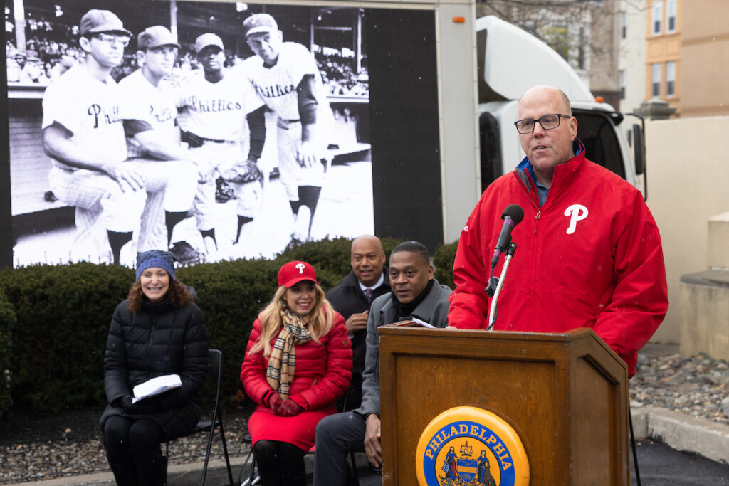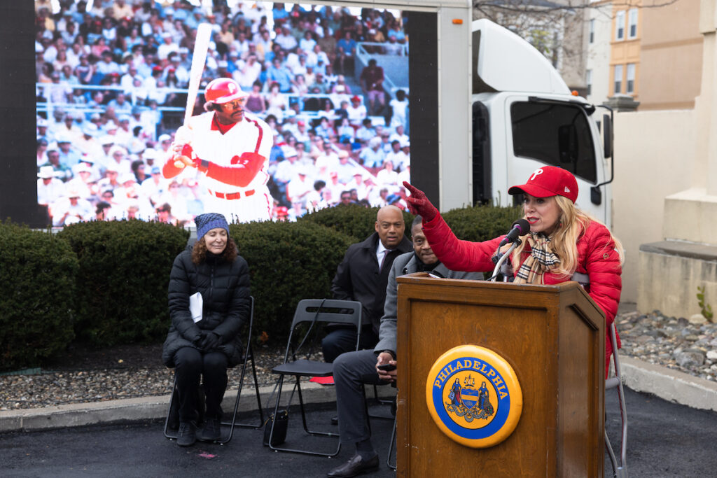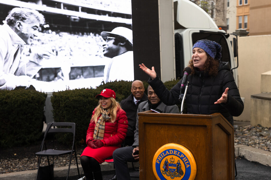 Mural Arts, in partnership with the City of Philadelphia and the Philadelphia Phillies, officially dedicated the mural Dick Allen, by Ernel Martinez. The mural celebrates Phillies legend Dick Allen, one of the top sluggers of his generation and the club’s first Black superstar. Photo by Gustavo Garcia, Colibrí Workshop.