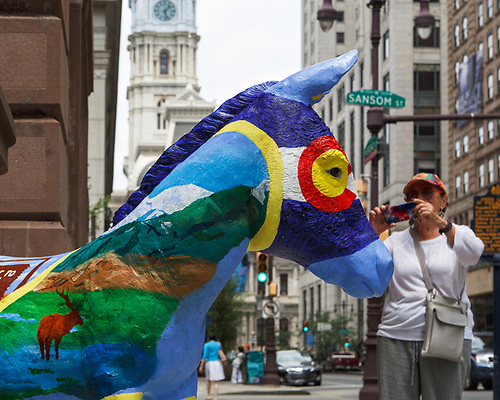 Donkeys Around Town was an interactive community art project hosted by the Democratic National Convention in partnership with Visit Philly, Mural Arts, Roe Fabricators, and ArtJawn.com. In July 2016, 57 fiberglass donkeys hand-painted by more than 2 dozen local artists were displayed at popular sites and attractions throughout Philadelphia. The donkeys represented the delegations from each of the 57 states and territories attending the DNC. Each delegation contributed 6 icons to include in their donkey’s design.