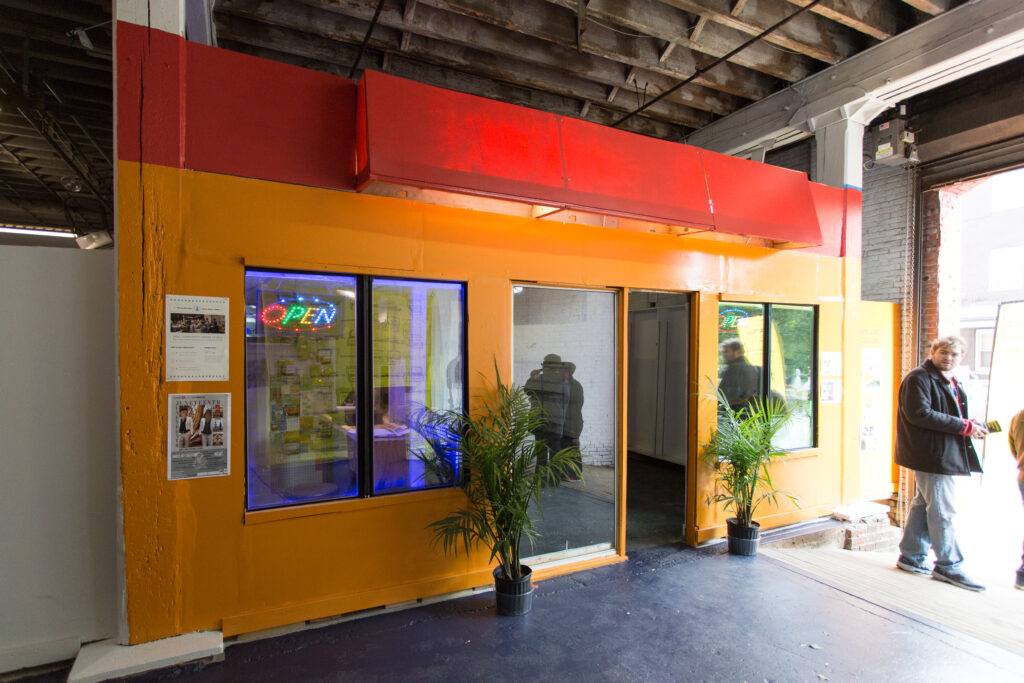 The mural Doo-Wop Diner was painted on the building that housed The Trolley Car Diner, owned by Ken Weinstein. Sold in 2019, the diner was a 1952 vintage diner from Wilkes Barre, PA that sat adjacent to an old Philadelphia Transit Company trolley car that used to function as an ice cream shop.