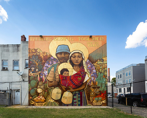 In neighborhoods across the city, families and individuals are feeling the immediate and lasting effects of harsh immigration laws. Inspired by recent national events, Chilean artist Ian Pierce (also known as Artes Ekeko) created a mural that explores Philadelphia’s identity as a sanctuary city, working together with local artist Cesar Viveros on this bright, textured design. The mural features a family making their way to a new home, just like the Fairhill neighborhood where it is located, in homage to Fairhill’s predominantly Hispanic and Latinx community. The immigrants who are a large part of the fabric of Philadelphia deserve to feel at home, to be valued and respected, and that starts with representation.