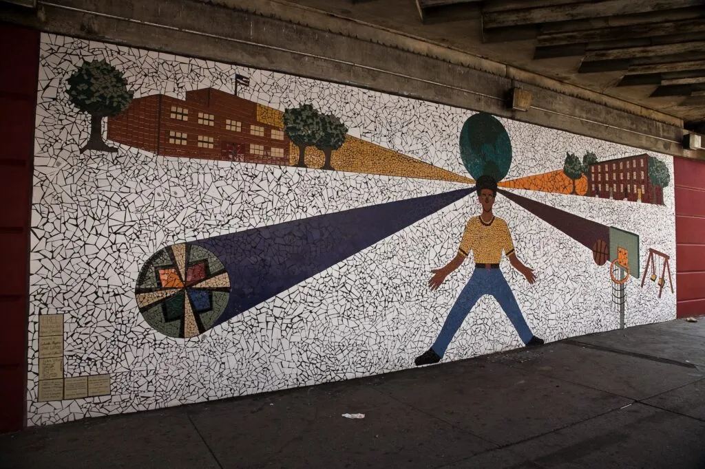 Location Note: Mural no longer on view at this location (removed in 2021).