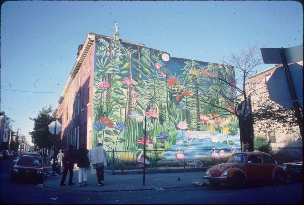 Location Note: Mural deaccessioned in 2025 because of condition issues. Mural was on the rear of the building at 1929 N 19th Street and wa visible from Gratz Street.