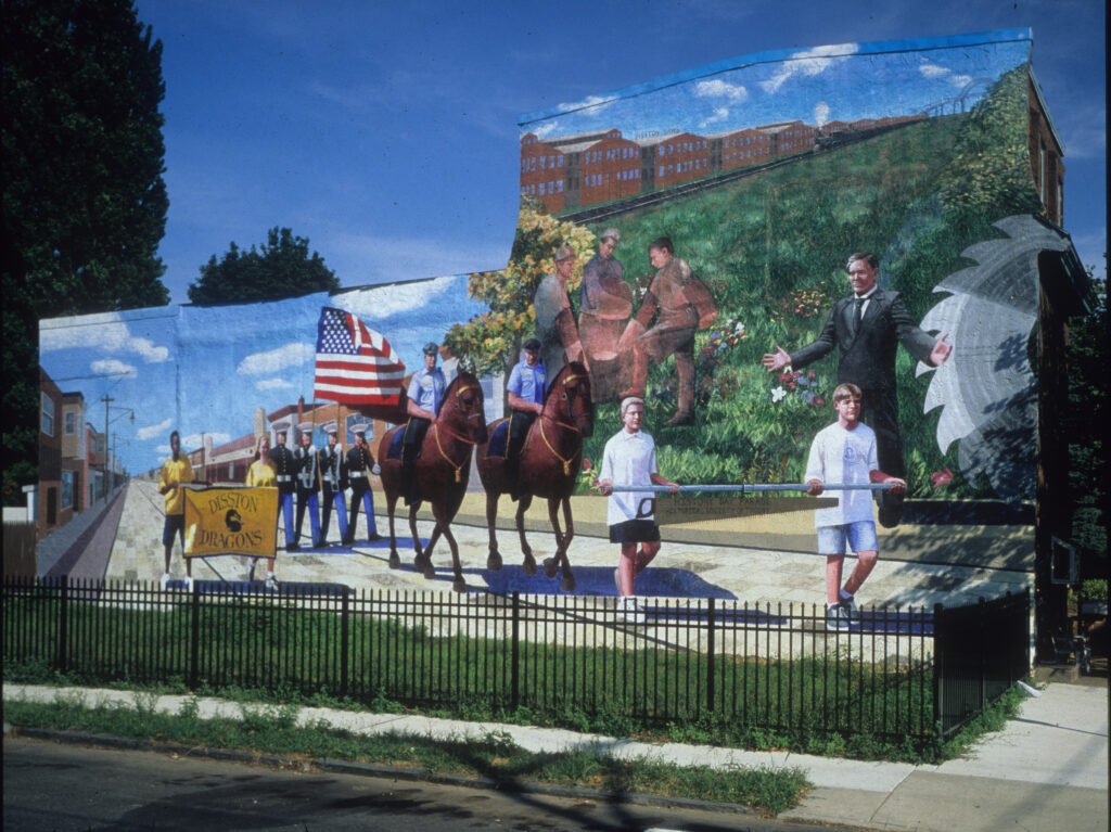 History of Tacony by artist Karl Yoder is located in the Tacony neighborhood of Philadelphia, Pennsylvania. As the title suggests, the mural depicts the history of this Northeast Philadelphia neighborhood, a vibrant industrial community. The mural celebrates the growth of this area and the annual Tacony History Parade held the 3rd Saturday of September since 1992.