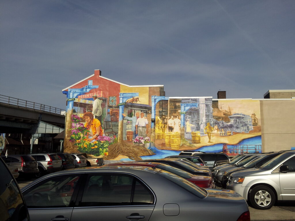 Through a number of community gatherings and public creative planning meetings, Mural Arts staff and Frankford residents explored the diverse places, events, and people that make up the community’s identity. “Frankford lives on the streets” was a key idea brought to the fore by these meetings, expressing the memories and hopes that the community has to re-establish Frankford Avenue as a place where people can work, live, shop, and gather in a safe and united atmosphere.