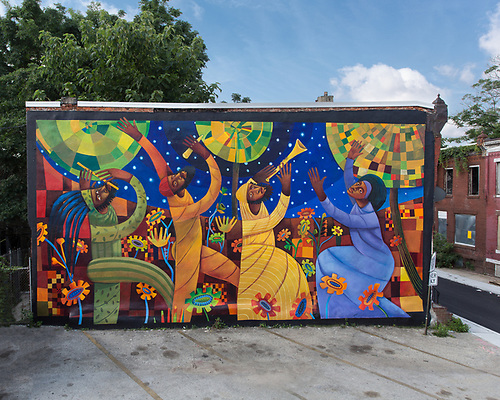 In the Presence of a Peaceful Place by artist Parris Stancell comprises two murals installed on two adjacent homes at 32nd and Cumberland Streets in the Strawberry Mansion neighborhood of Philadelphia, Pennsylvania. Both murals are rich with symbolism.