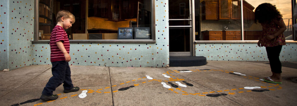 Journeys South does not add to the inventory of large scale paintings on walls. Its title is less a destination than a direction. It seeks a different experience of public art—one which requires greater engagement on the part of the viewer who is asked to “journey” through time and space to connect ideas and images. In the course of planning discussions, project advisor Helen Shannon of the Museum Studies Department at the University of the Arts talked about the importance of the interstitial: of the things in between the projects that help us make connections. While she intended to point out the need to connect the individual works of art, it became clear that these works of art are themselves connectors to each other and the larger body of murals and other expressions of South Philadelphia’s cultural heritage.