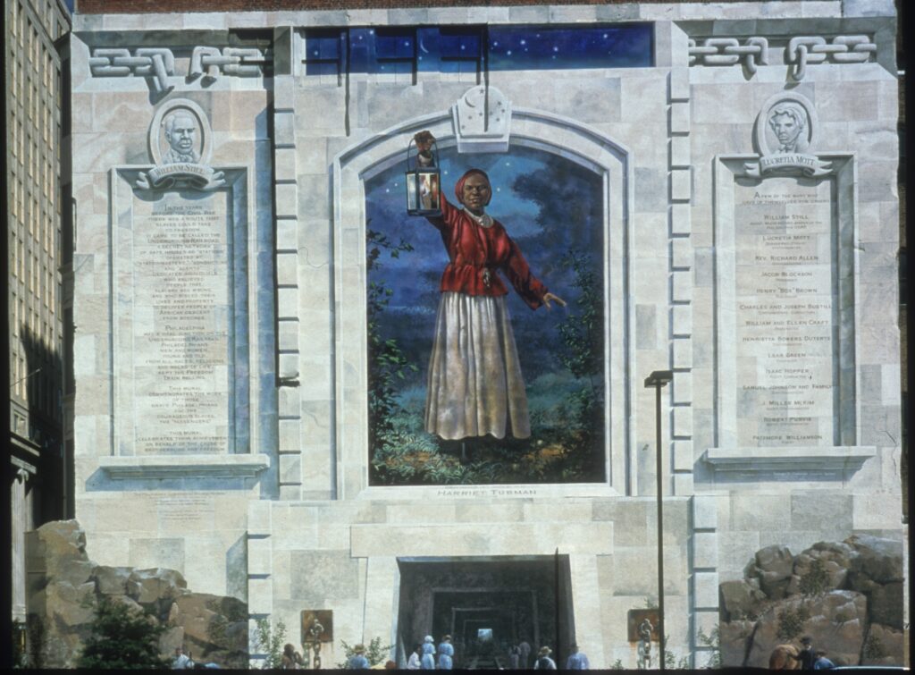 Manayunk Panorama by artist Eurhi Jones is located at the James Dobson Elementary School in the Manayunk neighborhood of Philadelphia, Pennsylvania. Jones worked with the students at the school in virtual classes to connect with the mural theme. The mural is a reflection of what makes life in their neighborhood unique: local flora and fauna, the river, the canal, trains and railroads, as well as industrial history.