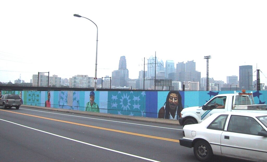 Mantua All Stars by artist Shira Walinsky was located in the Mantua neighborhood of Philadelphia, Pennsylvania. This mural provided a new way to welcome drivers to West Philadelphia. It depicts people from the Mantua neighborhood who are “stars” in their community. This mural covered the old Philadelphia Anti-Graffiti Network mural Life in the City, the first mural painted by Jane Golden and youth from Mantua.