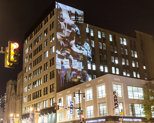 Metanoia was painted by teaching artists Dom Lyner and Brad Carney, who have taught students in school and after school about radial symmetry using the theme “We the Power” to discuss various themes and projects. This culminating design reflects classroom experiences, community development with SAC meetings, and teacher input.