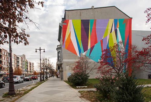 Odili Donald Odita addressed the social struggles faced by Philadelphia and the vital role that is played by community organizations such as Mural Arts in keeping the city thriving. Odita’s mural highlights the active role that citizens and organizations play in filling the institutional voids present in underserved neighborhoods. The weaving of color and form represents the fabric of institutions and residents whose joint involvement and commitment make Philadelphia a vibrant community. Odita presents the tension of contradiction and opportunity found in “calamity and potential”.
