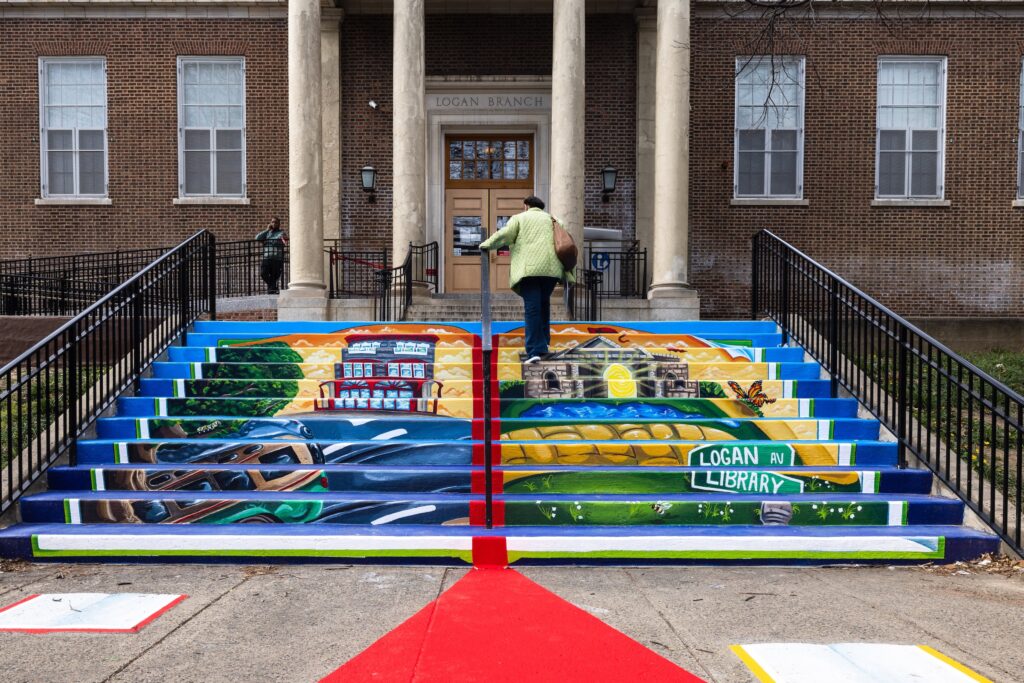 Peace, Positivity, and Hope for the Future by artist Alloyius Mcilwaine is located in the Germantown neighborhood of Philadelphia, Pennsylvania. Created in partnership with Philadelphia City Councilperson Cindy Bass, this mural reimagines and beautifies the intersection of Stenton and Germantown Avenues through public art. The mural depicts a group of neighborhood children underneath a dove, a symbol of peace, against a blue sky and surrounded other patterns that include symbols of life, peace, growth, and energy.