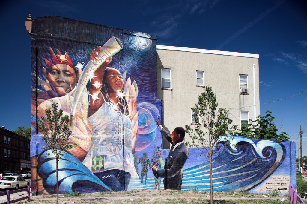 In this large scale mural project and playground build, Mural Arts Philadelphia and Eagles Youth Partnership teamed up with the School District of Philadelphia to transform Richard R. Wright elementary school into a virtual fantasy land of fun. With brightly painted murals adorning the interior and exterior surfaces of the school and beautiful newly installed tile mosaic benches, utterly transformed by collaborative process, teamwork and Mural Arts workmanship at its best. Together, the artistically revamped school walls and state-of-the-art play center have created a vibrant and inspiring environment for learning and a dynamic, safe new place to play and have fun.