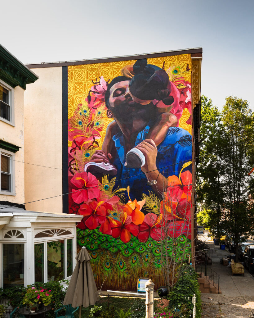 Location Note: The mural is painted in the east side of the building and is visible from atop the steps leading to The Rail Park entrance located at 1107 Callowhill St.