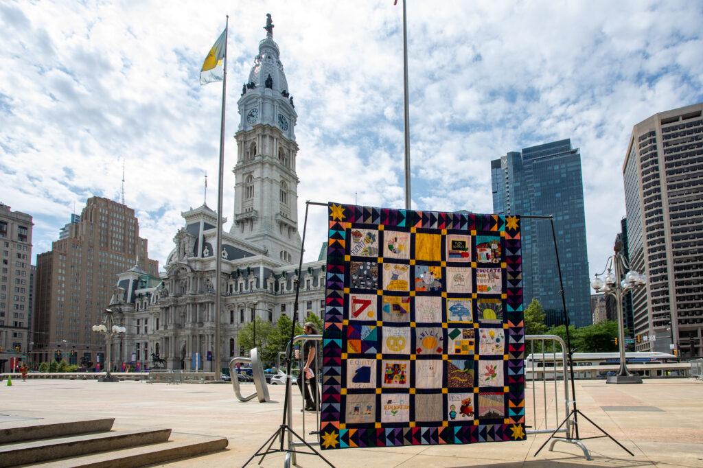 Stitching our Futures is a participatory art project that brings Philadelphians together to learn about the city’s budgetary process and imagine the possibilities of re-allocating funds towards community investment on their own terms. Participants were invited to attend a series of online Teach-Ins hosted by artist Phoebe Bachman with grassroots advocates and city representatives speaking about their priorities for the upcoming budget cycle. Working through a materially-specific process rooted in the American tradition of quilt-making, these quilted squares were pieced together to form powerful quilts; a patchwork vision of Philadelphian’s stories of community investment and the place of each individual in the fabric of our city. The quilts were publicly displayed to foster conversations about the city budget and citizen-led priorities.
