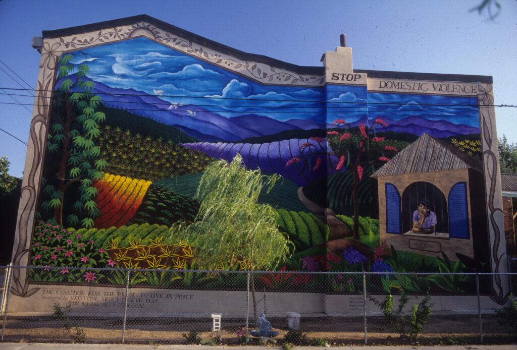 The mural was made possible by the Coalition for the Right to Live in Peace.