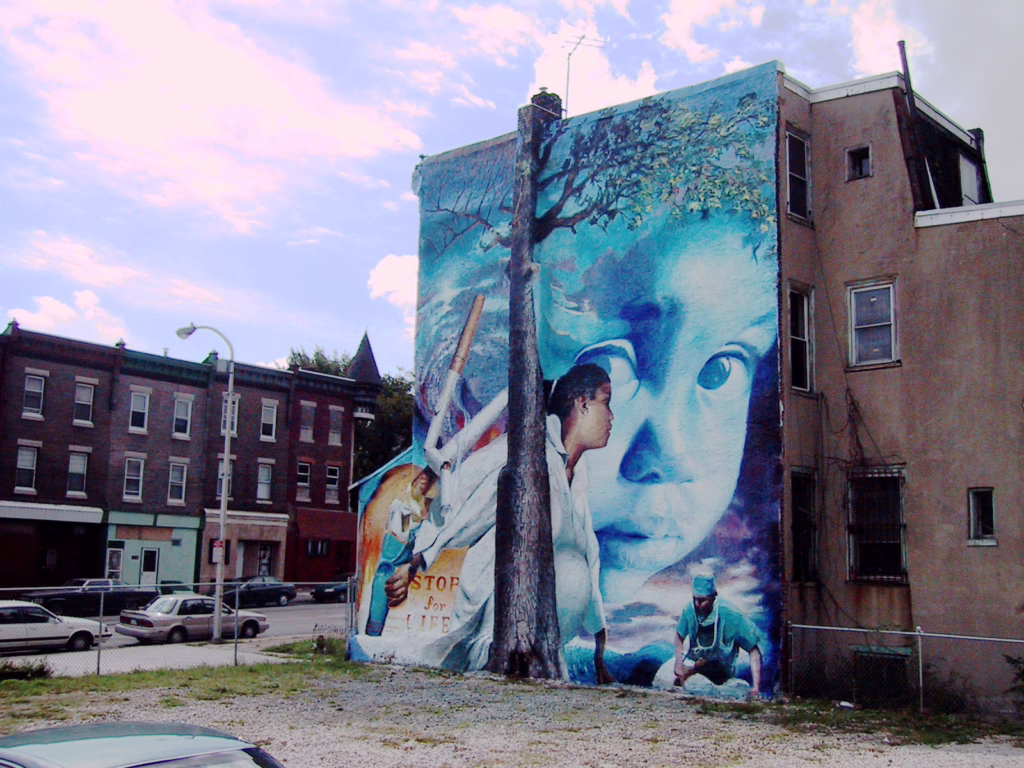 Stop for Life by artist Cliff Eubanks was located in the Cedar Park neighborhood of Philadelphia, Pennsylvania. This mural is one of four anti-smoking murals completed in 2003. This one represents the dangers of smoking while pregnant. It encourages women to quit smoking so both they and their babies can be healthy.