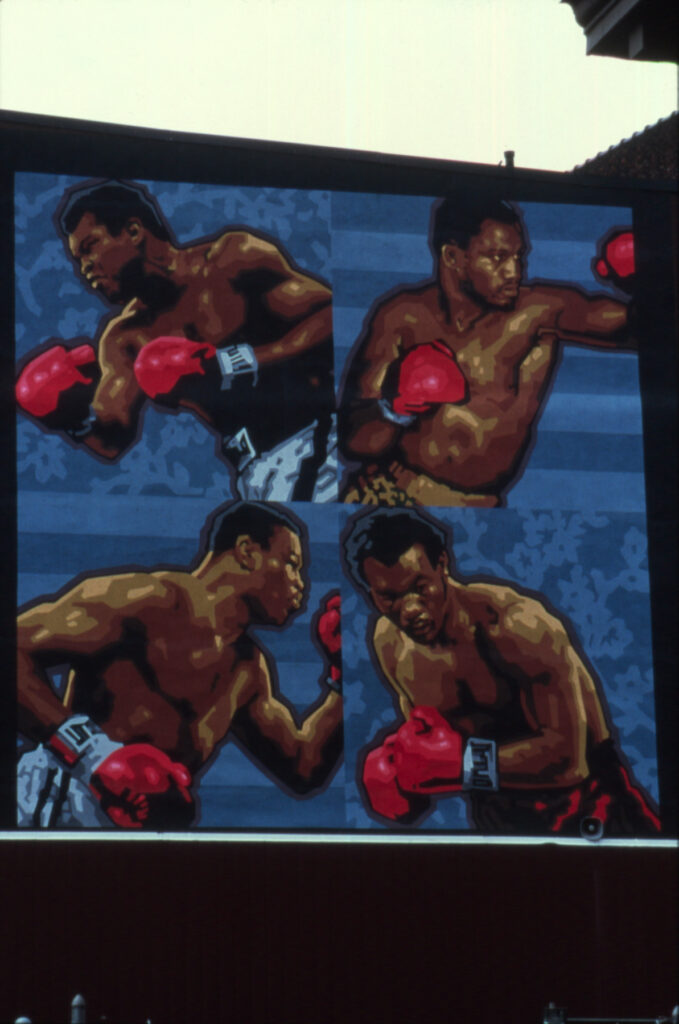 The idea for a boxing mural originated in 1997 when Jane Golden saw a documentary about Muhammad Ali and thought he would be an interesting subject for a mural. A few months later, the legendary boxing venue Blue Horizon contacted Mural Arts Philadelphia and expressed interested in having a mural on their wall, a perfect location for a boxing-themed mural. Artist David McShane, with his expertise in capturing people’s images, was interested in doing this project.
