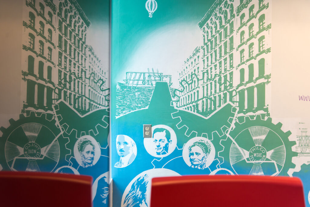 From July 20 to August 19, 2018, this year’s experiment in creative placemaking went farther than we’ve ever gone before, with the largest footprint ever—an additional 22,000 square feet of artwork! Members of the Guild program and summer interns were hard at work on ground murals designed with Heads of State. The design highlighted the transition from park to city and back again, integrating with large-scale installations developed by PORT Urbanism.