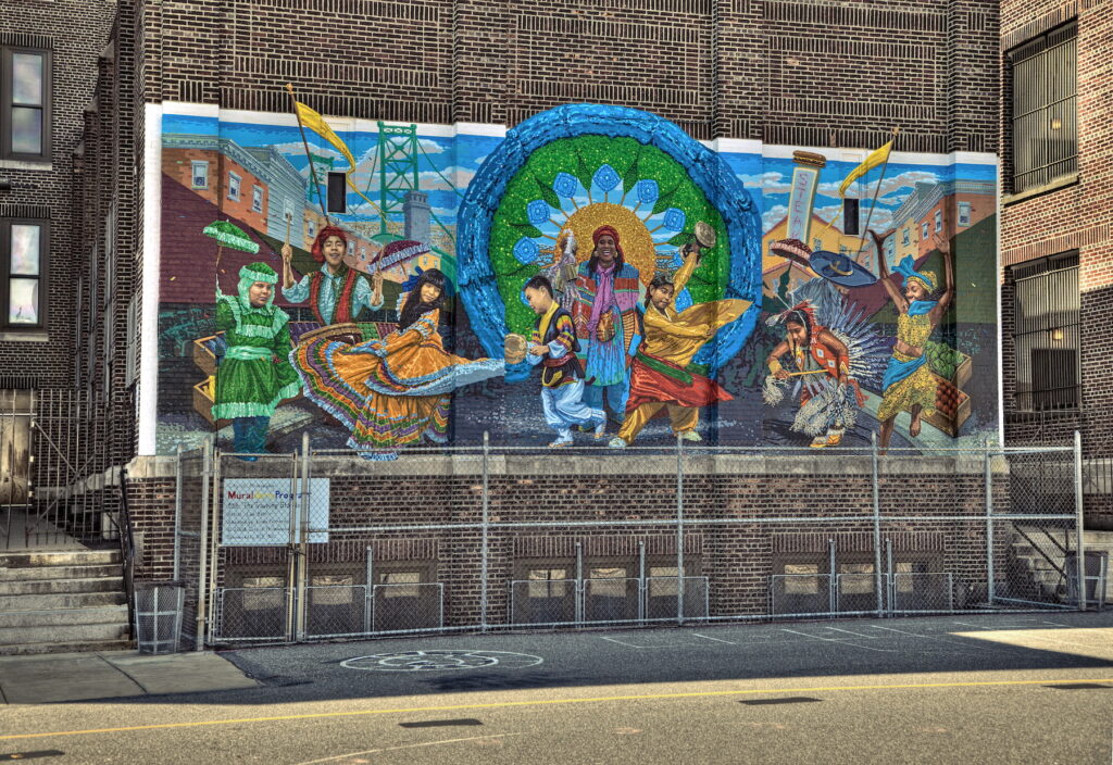 The Traveling Storyteller by artist Lee Behl is located in the Bella Vista neighborhood of Philadelphia, Pennsylvania. The mural is a commemoration of when storyteller Linda Goss visited the George W. Nebinger School to tell stories and paraded with students around the neighborhood wearing whimsical costumes.