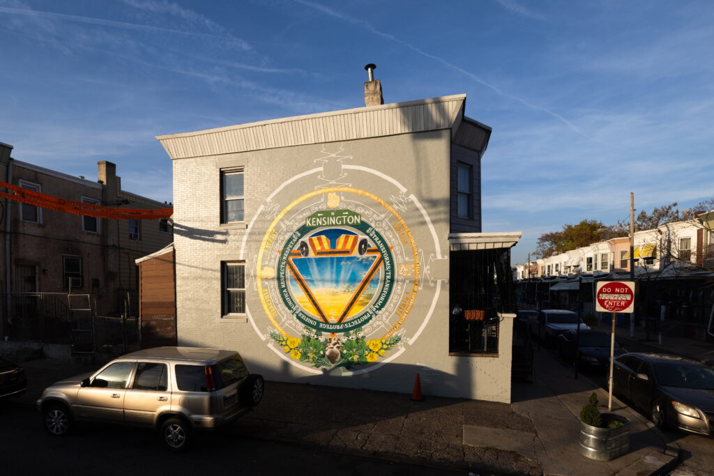“The concept behind this mural is inspired by War’s The World Is A Ghetto album cover art. Growing up in an urban neighborhood, on hot summer days everyone’s apartment windows would be wide open. You would hear music, laughter, arguments, and chisme (gossip). While War’s album art is a more direct reflection of where I grew up – the world I knew was a ghetto – I wanted to bring a similar vibe to the Spring Garden neighborhood.