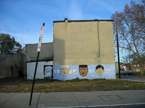Together by artists Dietrich Adonis and Eric Furness was located in the Francisville neighborhood of Philadelphia, Pennsylvania. Featuring faces of individual of diverse backgrounds and the word together the meaning of this mural is self evident. It is about unity and coming together to strive for a common goal. Whether its at the street, neighborhood, or city level it does not matter where you can from or what you look like. We are all in this together.