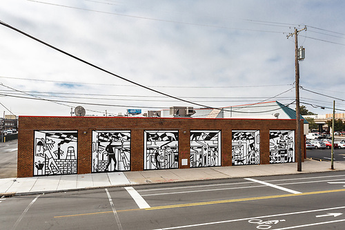 This project was part of South Philadelphia’s Snyder Plaza metamorphosis into Swanson Walk. In addition to new buildings and new stores, project sponsor The Goldenberg Group created a brand new art zone. Steve Powers, Joe Boruchow, Peter Ferrari, and Isaac Lin comprise the first group of megawatt artists to bring bright colors and fascinating patterns to the walls of the shopping plaza, energizing the space for neighbors and shoppers.