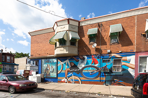This untitled mural by Ru8icon1, Simon Vasquez, and Juanjo Suarce is part of K-Town Lab, a multisited project in North Philadelphia that grew out of an idea by artists Claudio Ethos and Ru8icon1. In 2017, the artists met in North Philadelphia to create a plan to come back to Philadelphia and paint. A fortuitous encounter with Mural Arts Philadelphia’s Executive Director Jane Golden came a few weeks later. When Ru8icon1 mentioned the free wall painting idea to her, she also felt something resonate; they were clearly onto something. With the support of the Mural Arts team, they created the Ktown Laboratory in North Philadelphia during three summer months in 2018. After the project was completed, they returned to the lives they were living before, but were not the same. It was time to reflect, contemplate and discuss the lessons learned. The experience exceeded their expectations; they created several murals and achieved deep cultural exchanges with local residents. They were convinced there was something deeply meaningful in what they started but they had only scratched the surface.