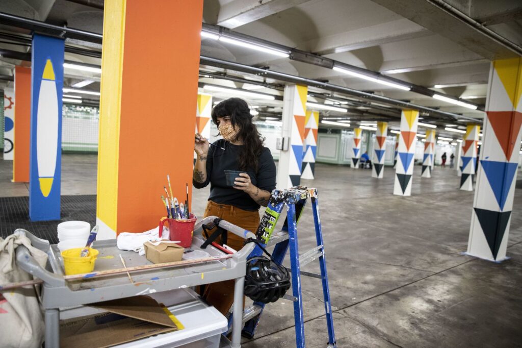 Mural Arts program turns 200 columns in SEPTA concourse into socially distant canvases