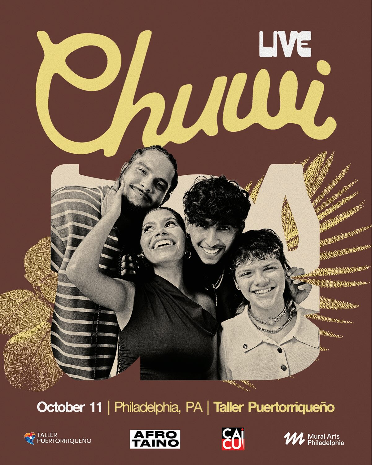 Join Mural Arts, CAICU, Taller Puertorriqueño, and AfroTaino for a live musical experience with Chuwi, a genre-blending Puerto Rican band redefining the sound of the island with a bold mix of plena, indie, and Caribbean rhythms. Hailing from Isabela, this dynamic quartet has quickly built a loyal fan base through…