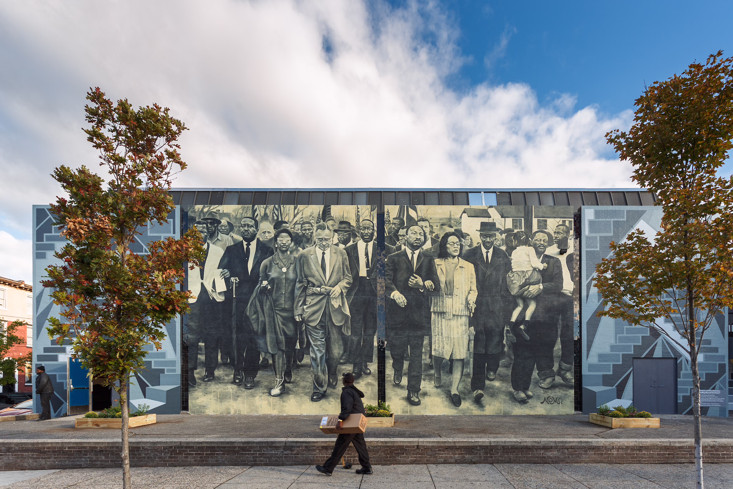 Cecil B. Moore Philadelphia Freedom Fighters © 2021 City of Philadelphia Mural Arts Program / Felix St. Fort & Gabe Tiberino, 2201 College Avenue. Photo by Steve Weinik.