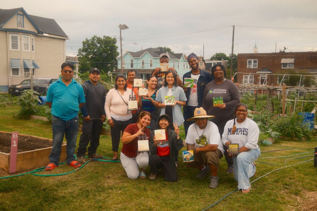 Here at Resilient Roots, I’m working with community members to host trauma-informed workshops centered around how community gardens and food bring us together. We’re creating a mural that focuses on produce grown at the farm and is significant to the three cultures that make up the Farm community: African American, Latinx, and Vietnamese. The goal is to create a large focal mural depicting the progression from seed to pot. To keep it educational and exciting, I thought it would be a great idea to create a matching game to help identify seeds and their corresponding full-grown plants. This way, new growers, of all ages, have a way to learn from more established community growers who selected images they thought were important to include! We just finished our last community workshop collecting information for the mural, and we’re now up and moving! I started painting about a week ago, and we’re aiming to be done before August.