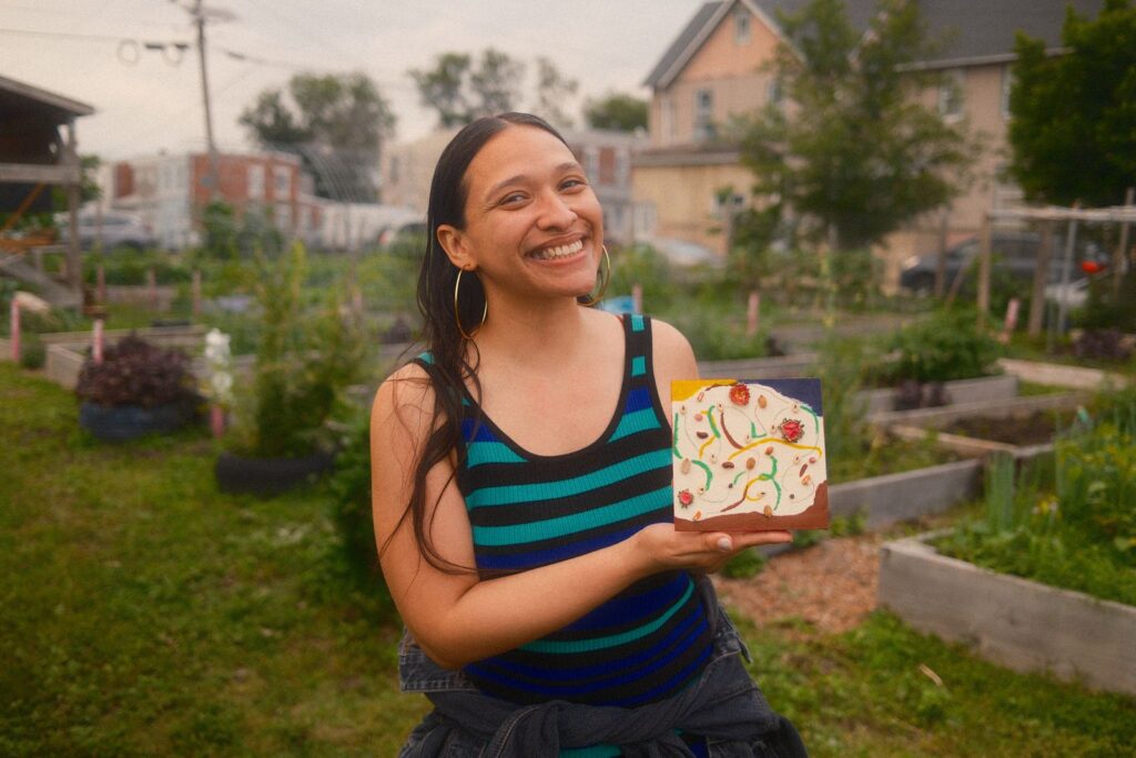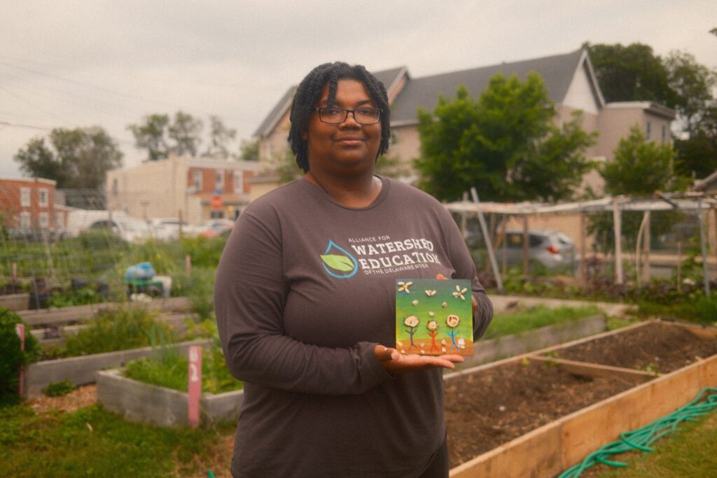 A former Art Therapy student and Arts Coordinator, they lead wellness-focused workshops and create murals across the region. De’von co-founded Philly Queer Life Drawing and is a resident artist at Camden FireWorks.