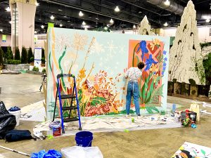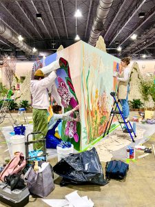 “I thought Tiger Lilies would be the boldest and most eye-catching flower to paint,” Natalie Flor Negrón helped me understand her thought process to grab people’s attention at the busy Flower Show. “It gave me the opportunity to add neon pops to it because the flowers were really bright already. And it makes it look like it’s glowing in the sun.”