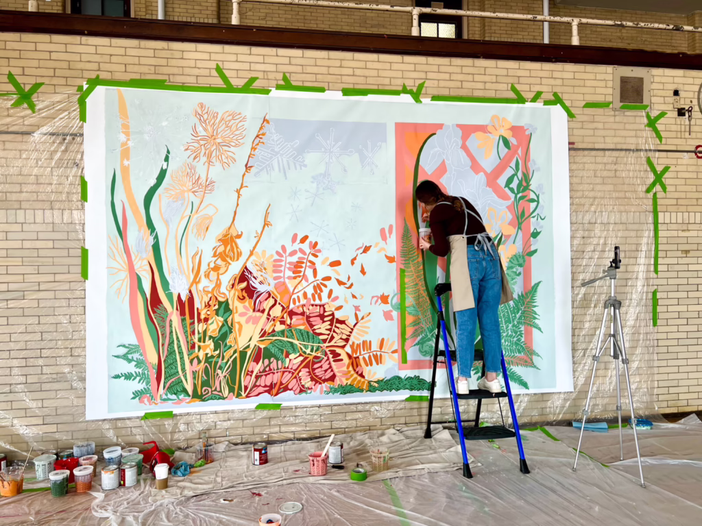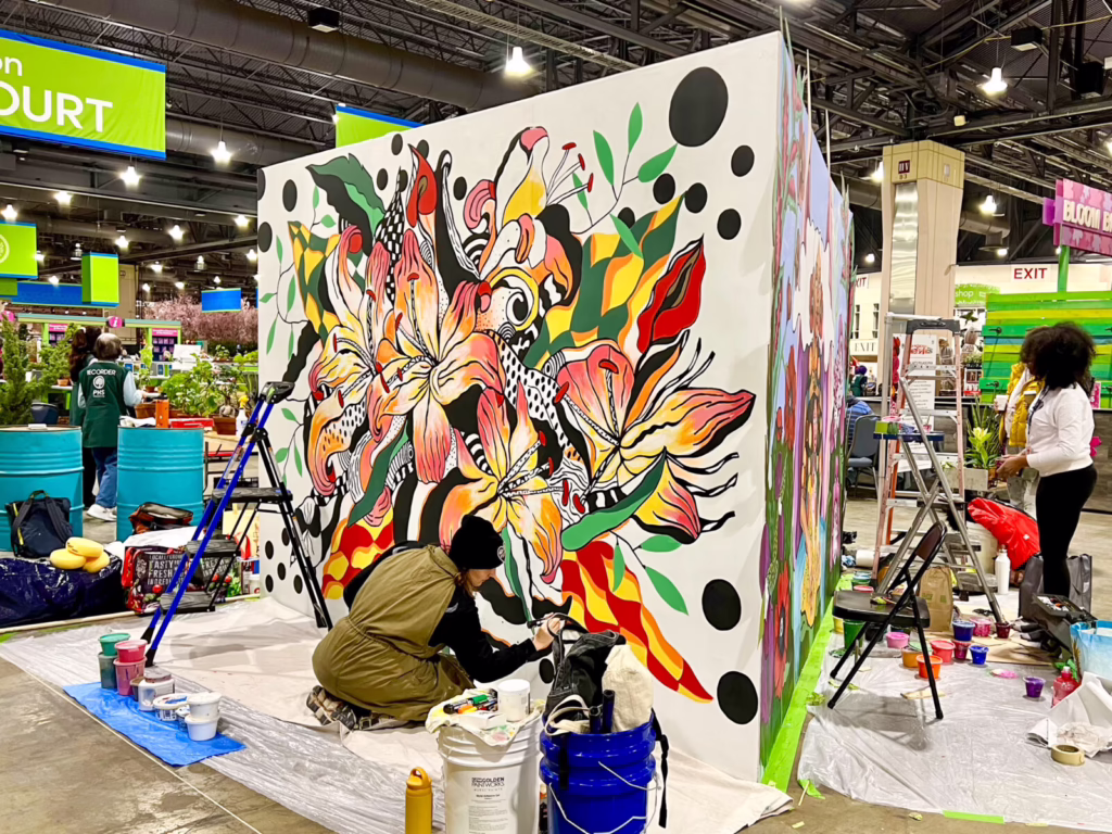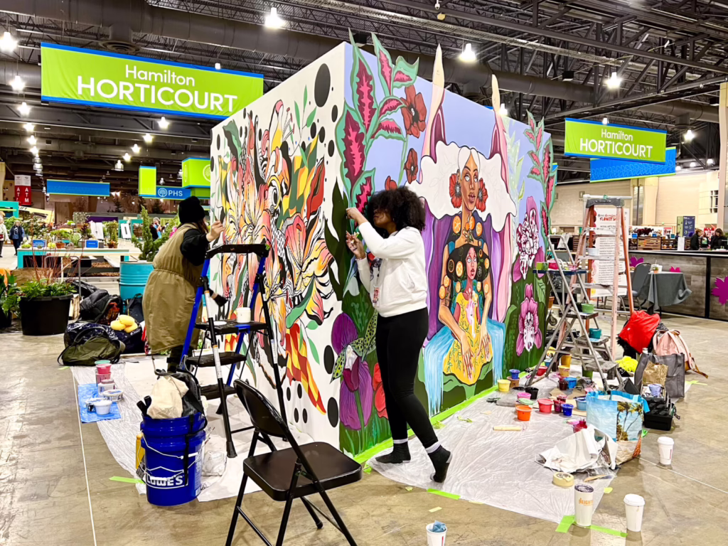 For the 2024 Flower Show, Mural Arts Philadelphia has worked with three emerging Philly-area women muralists to create murals around the power of the collective!