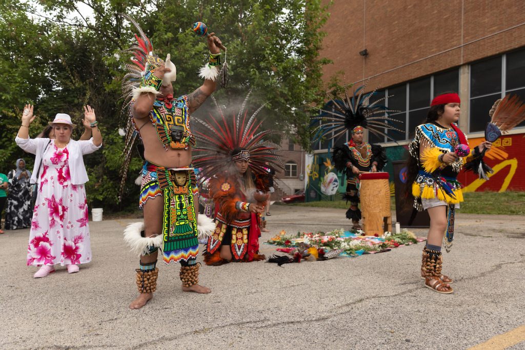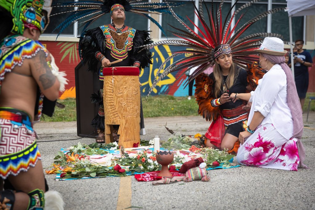 The dedication event opened with a traditional offering by Cesar Viveros, followed by a brief speaking program and then a traditional Aztec dance to celebrate Nick’s fascination with his Mexican heritage. Nick’s favorite foods were on hand, along with breakfast treats from Brown’s Super Stores. This moving yet celebratory,— dedication provided a space for friends and family to come together to honor this extraordinary young man lost so tragically. Mural Arts Philadelphia was honored to be a part of this celebration of Nick’s life.