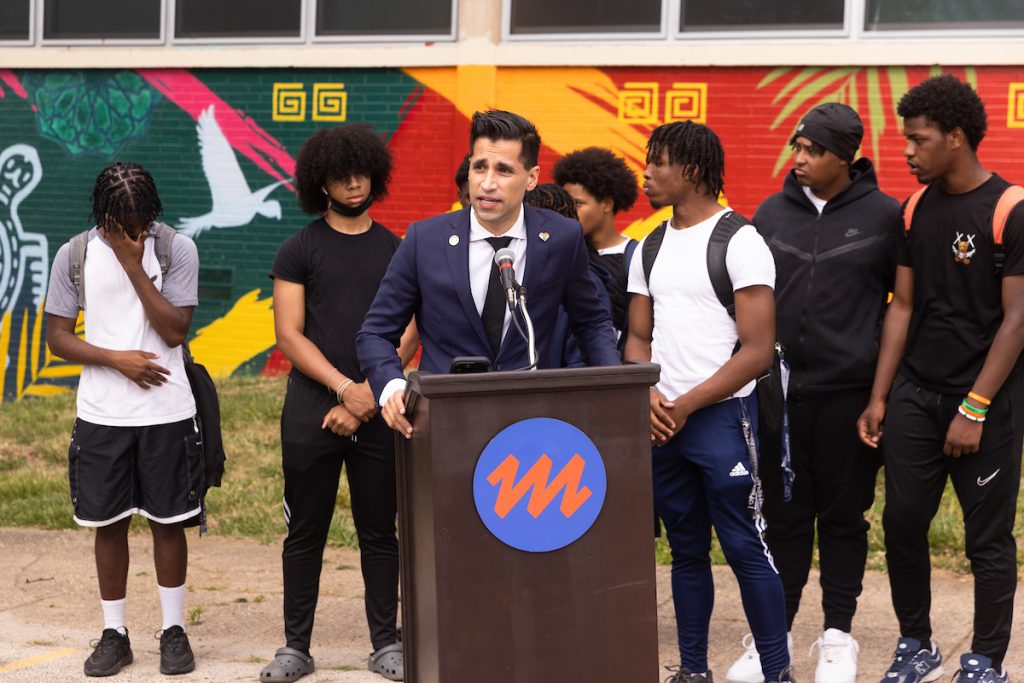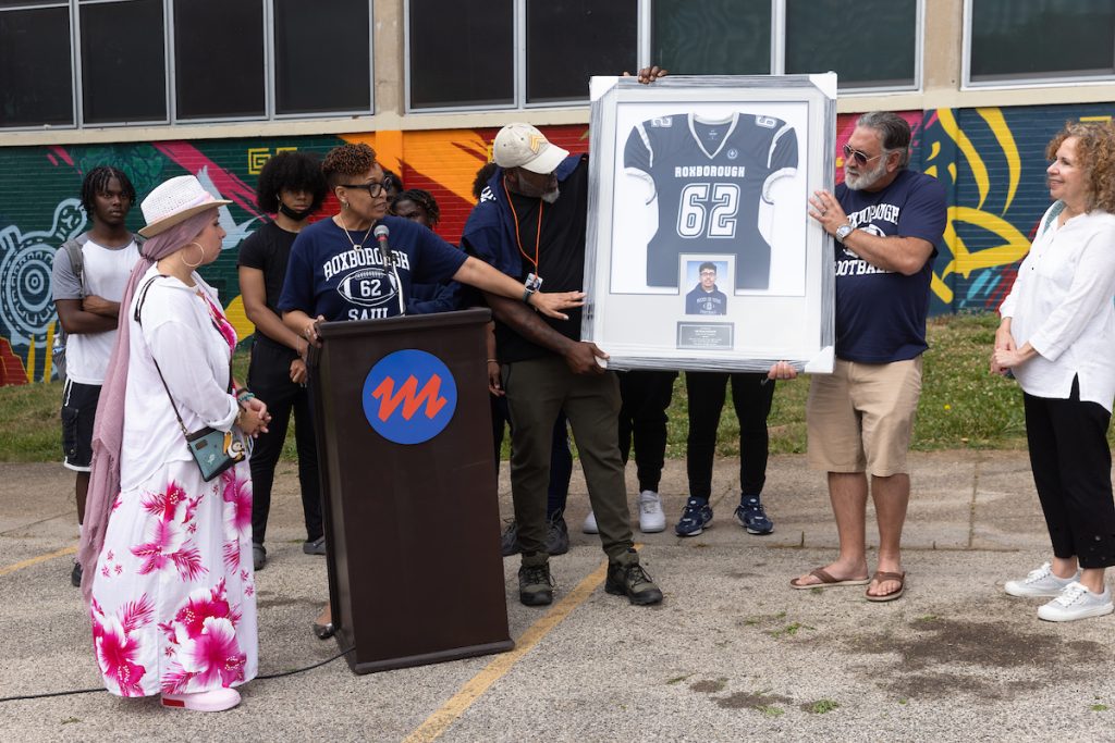 Nick was a freshman at WB Saul who joined Roxborough’s football team (the closest school for WB Saul students). In his fifth week of school, Nick lost his life in a shooting on the Roxborough campus. This mural dedication celebrates an amazing young person described by his peers at both Saul and Roxborough as a light, who was always smiling, who brought joy to the world, and cared deeply about it. He was beloved by family and friends.